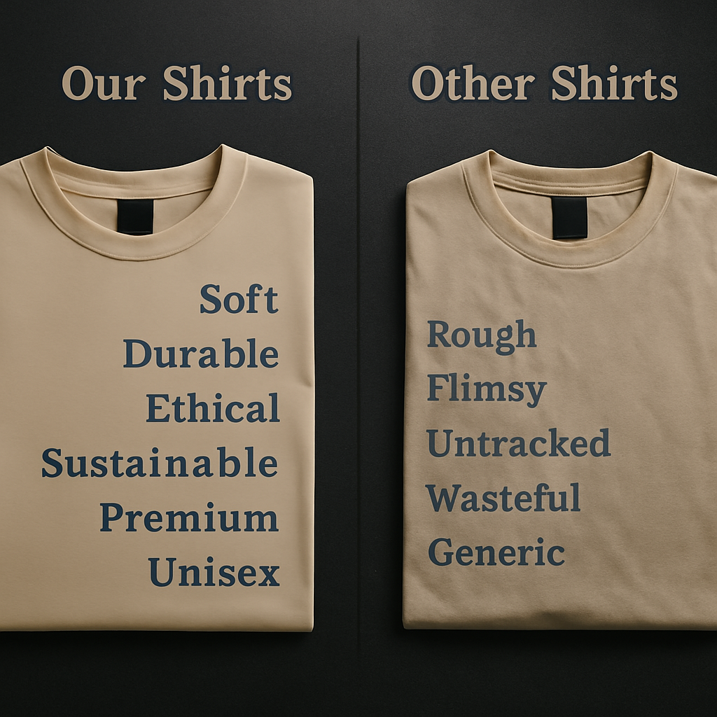 Our shirts are made to last—with 100% ring-spun cotton, a lightweight 4.5 oz fabric, and a modern unisex fit. Printed using eco-friendly dyes in WRAP-certified facilities, they’re soft, durable, and responsibly made.